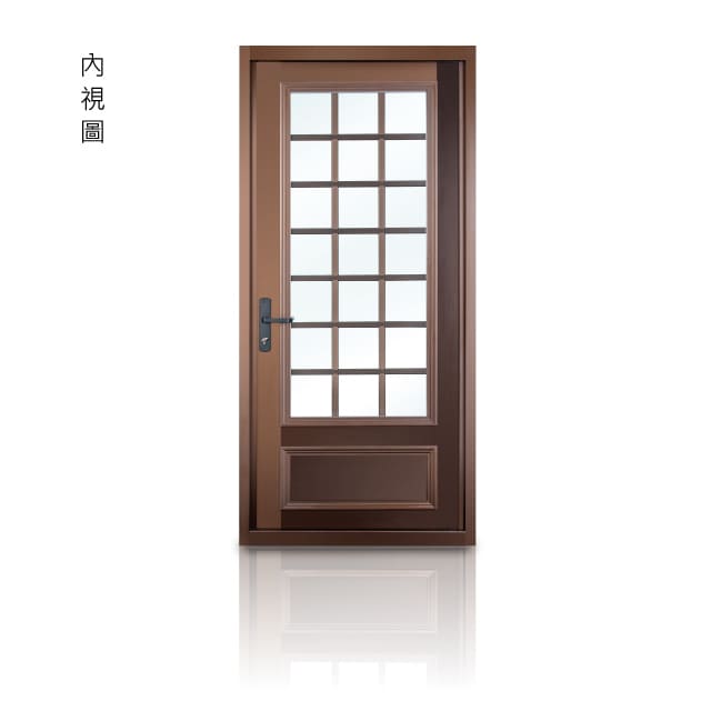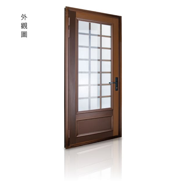 ※木紋系列 – 採用真空木紋轉印,以高溫220℃狀態真貼合壓力,使轉印油墨滲透入塗膜內層,滲入深度30μm,能有效與塗料結合,使木紋紋路更清晰持久,可耐紫外線UV照射,高耐候等級塗料符合美國 AAMA2605 & AAMA0604 耐候規範。顏色:純白、牙白、8195、49316、香檳、 B1N、灰平光、B5N、咖啡平光 適用於加壓門