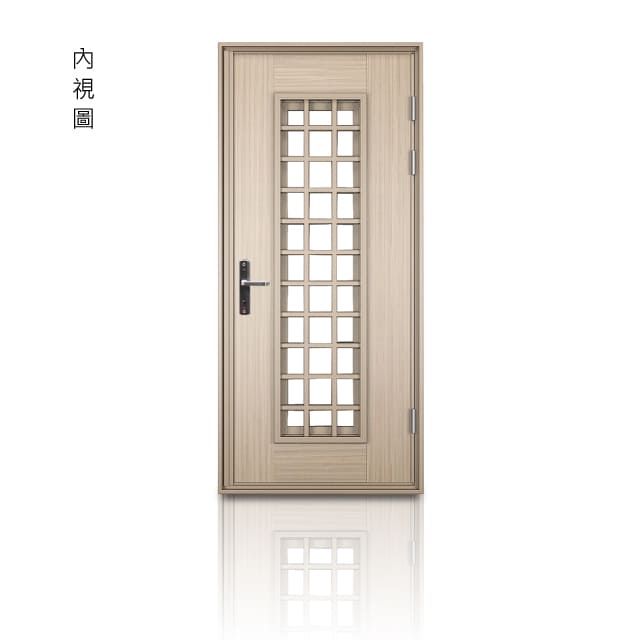 ※木紋系列 – 採用真空木紋轉印,以高溫220℃狀態真貼合壓力,使轉印油墨滲透入塗膜內層,滲入深度30μm,能有效與塗料結合,使木紋紋路更清晰持久,可耐紫外線UV照射,高耐候等級塗料符合美國 AAMA2605 & AAMA0604 耐候規範。顏色:純白、牙白、8195、49316、香檳、 B1N、灰平光、B5N、咖啡平光 適用於加壓門